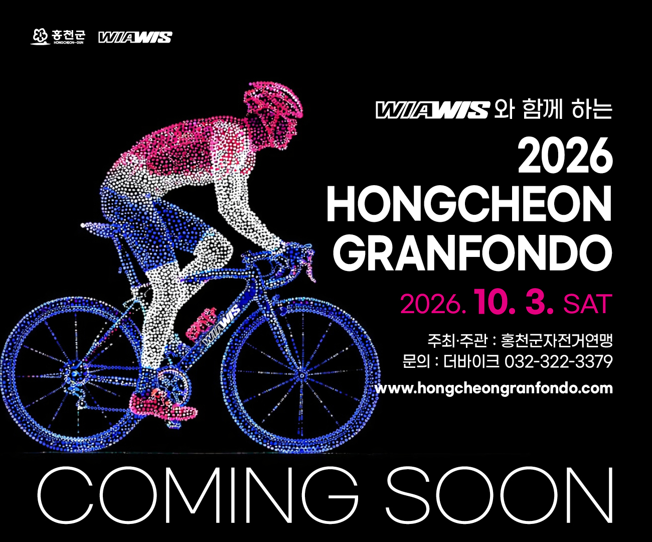개최 일자: 2026. 10. 3. SAT (토요일) 주최·주관: 홍천군자전거연맹 문의처: 더바이크 032-322-3379 공식 홈페이지: www.hongcheongranfondo.com #2026 홍천그란폰도 #홍천그란폰도 #